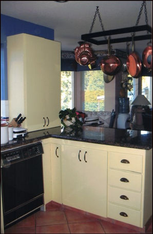 A condo kitchen upgrade, a simple closet organizer, an antiqued finish kitchen, and a basement suite kitchen.
